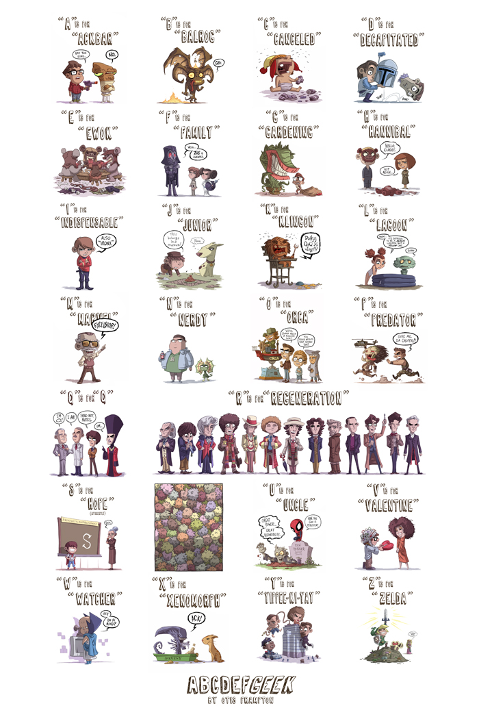 J’adore les abécédaires! Et encore plus quand ils sont délirants, inventifs et inspirés! C’est donc avec plaisir que je vous présente le travail d’Otis Frampton. Ne vous arrêtez pas à ce que vous aller voir ici aujourd’hui. Je vous invite fortement à aller voir l’ensemble de son travail sur sa page deviantArt, qui est un véritable plaisir pour nos mirettes!