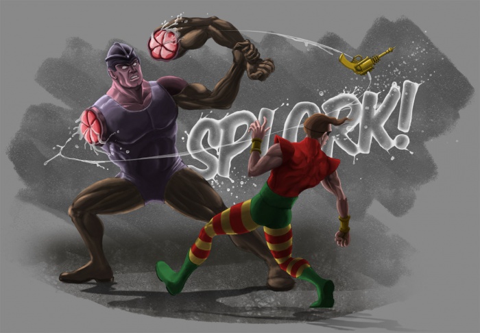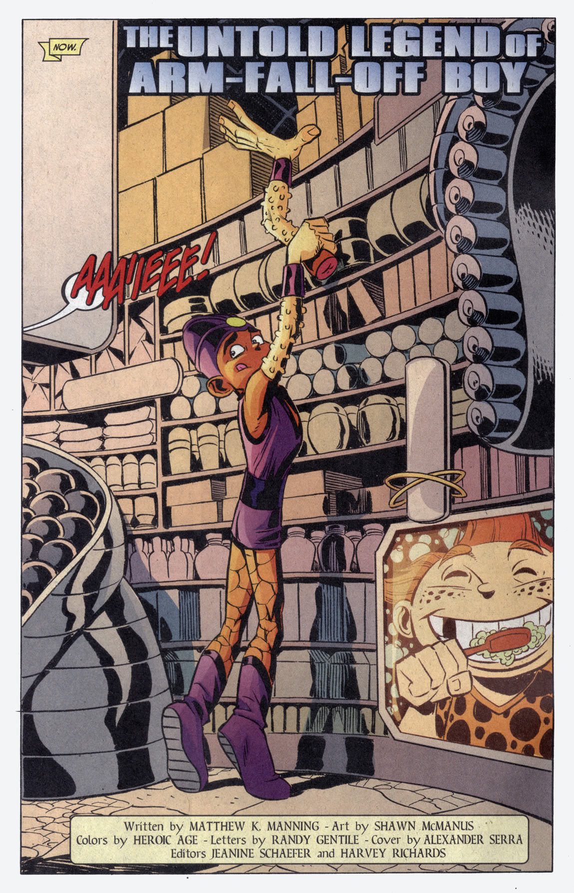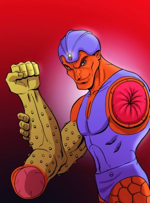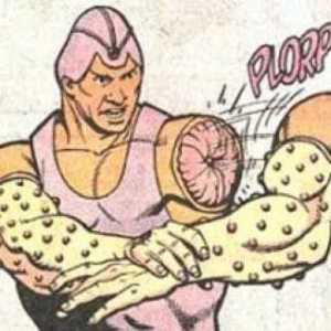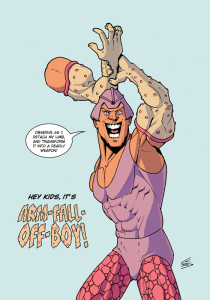 La Légion des super-héros ressemblait à un véritable défilé de freaks show avec des pouvoirs aussi imaginatifs et courageux qu’inutiles… La preuve avec ce personnage qui ressemble à une figurine qu’un enfant aurait démembré. Il a le pouvoir… Wait for it… de s’arracher le bras pour taper ses ennemis avec!