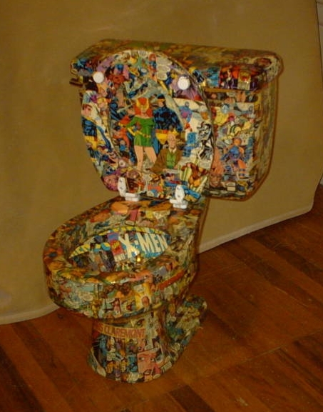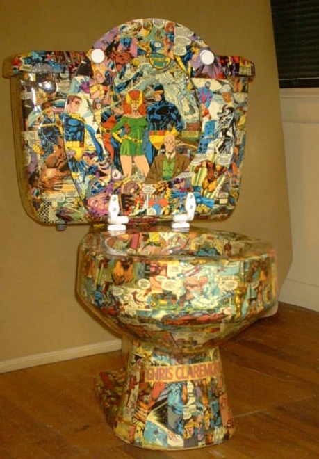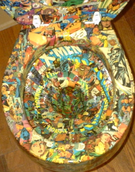 Ce n’est pas le département de marchandising Marvel qui est devenu. Il s’agit ici d’un objet 100% artisanal. Des toilettes recouvertes jusqu’au dernier recoin avec toutes les pages du numéro 1 de X-Men, écrit par Chris Claremont et dessiné par Jim Lee, qui s’était vendu à 7 millions d’exemplaires.