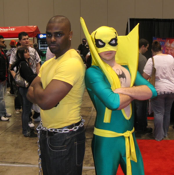 Luke Cage (Power Man ) ici avec son comparse Iron Fist (nom qui rappelle étrangement une certaine pratique sexuelle que la décence m’empêche d’aborder ici ) qui fut membre (hum !) après que la chose eu perdu momentanément ses pouvoirs .