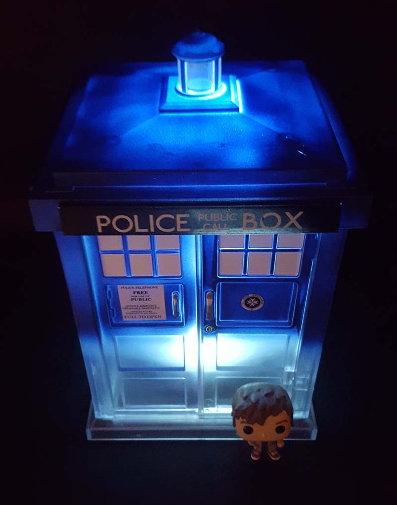Ma dernière pop du Doctor Who a été le TARDIS qui se dématérialise. Il est pareil que la version normale à la différence que le bas est translucide. Ce qui donne un rendu superbe.