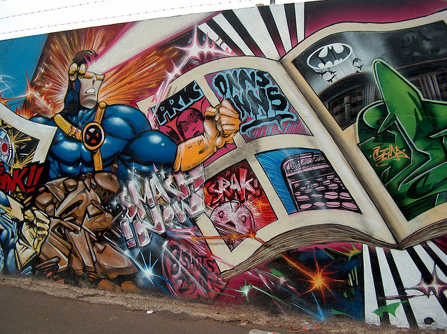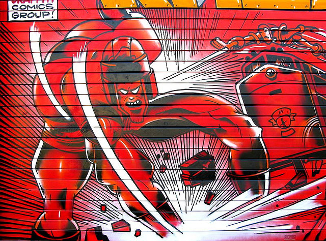 Suite et fin (ou pas) de cette petite expo dédiée à l’art urbain et aux super-héros. Si vous avez des idées pour les prochains thèmes ou si vous êtes dessinateurs et vous voulez y participer, n’hésitez pas à m’envoyer un e-mail à redac@fteam.org.
