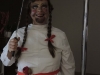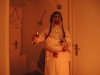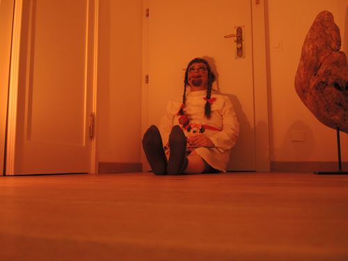 C’est par hasard en cherchant un couteau en plastique dans mes déguisements que j’ai trouvé une blouse blanche que mon médecin m’a prêté pour faire quelques délires: parfait en la mettant à l’envers pour faire une robe…