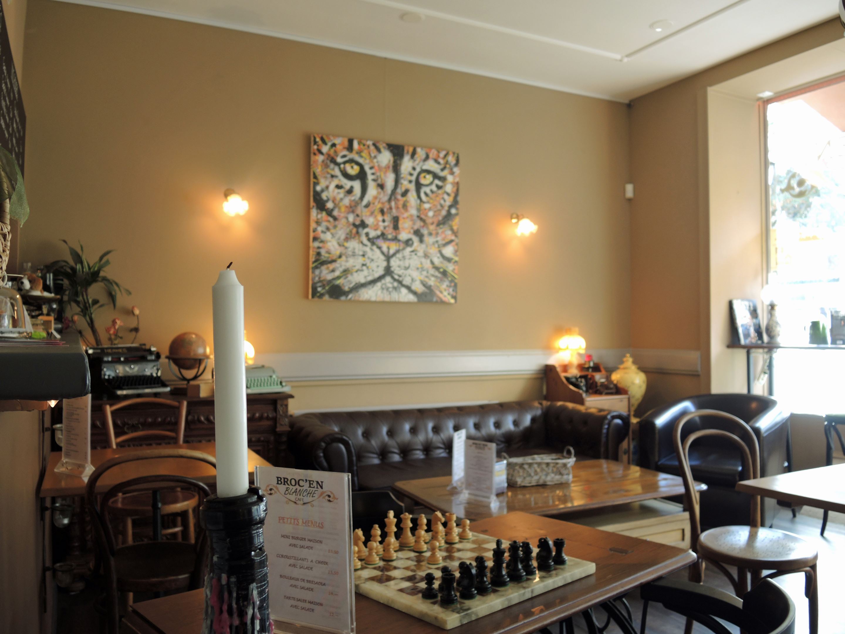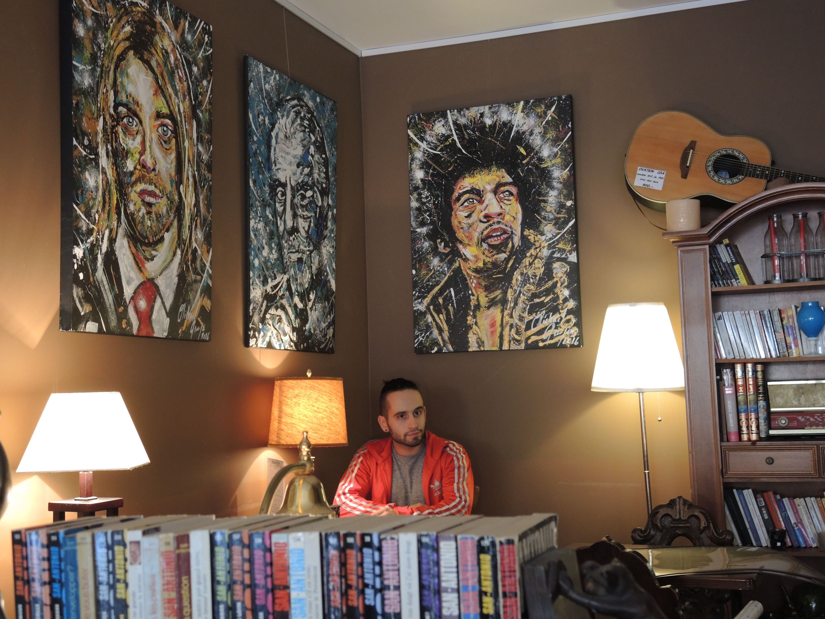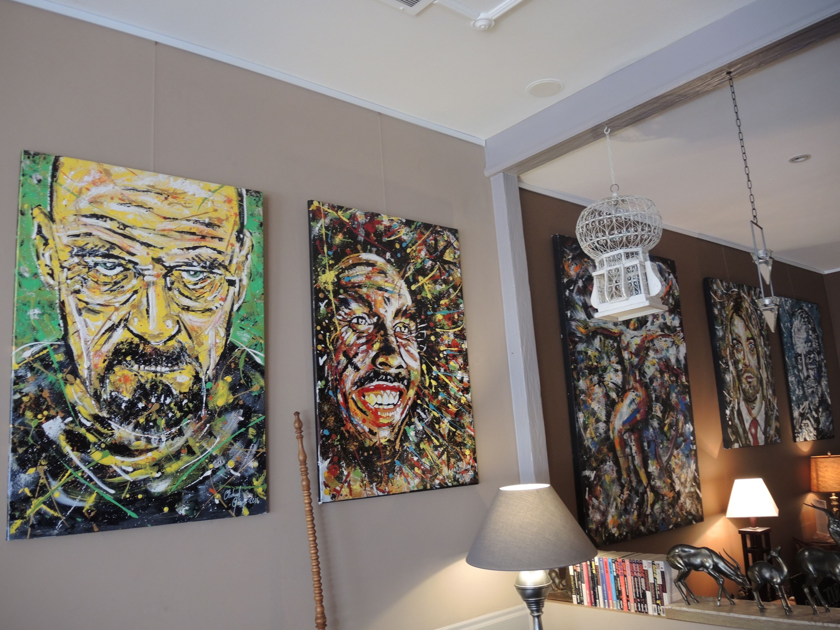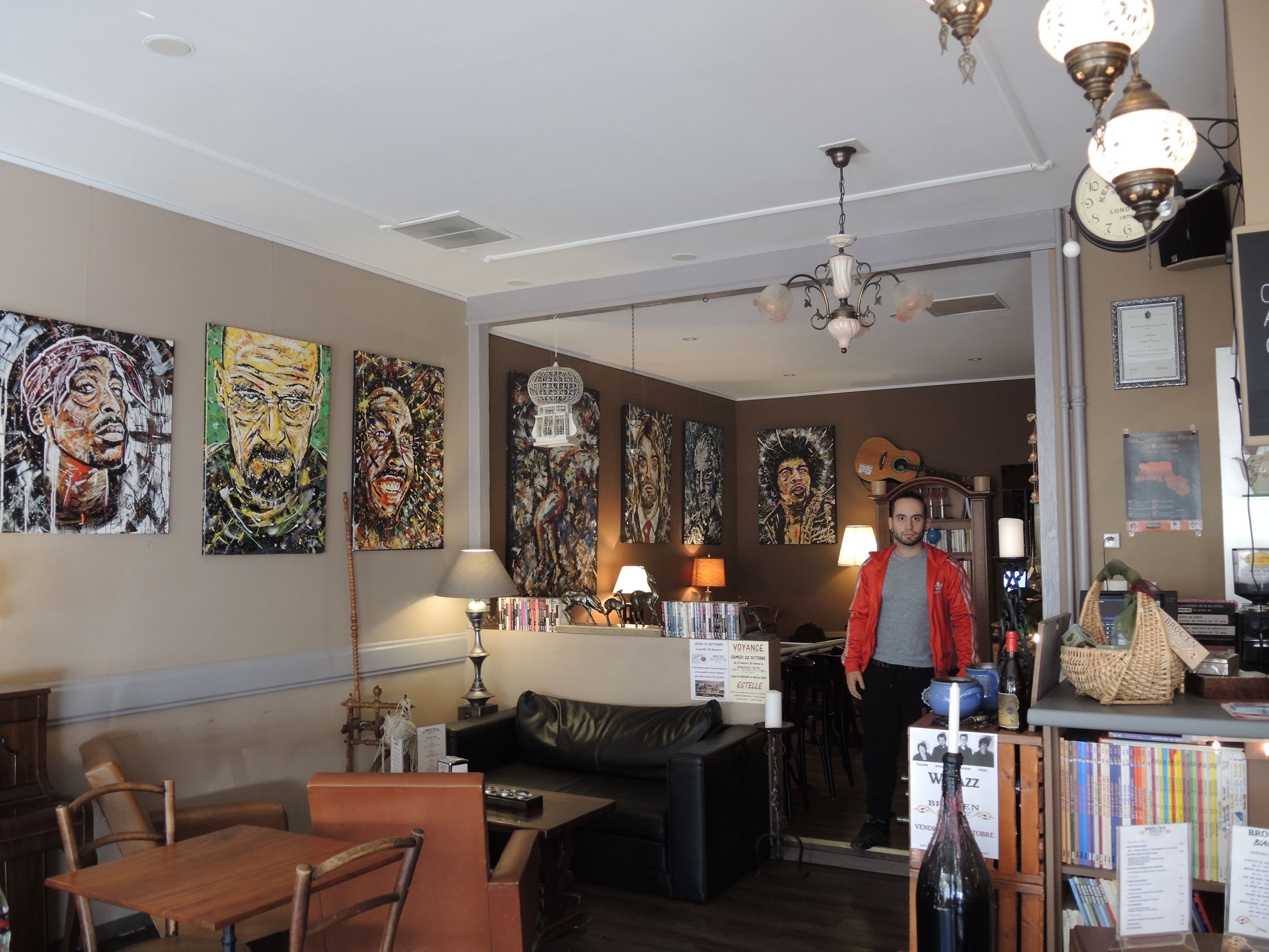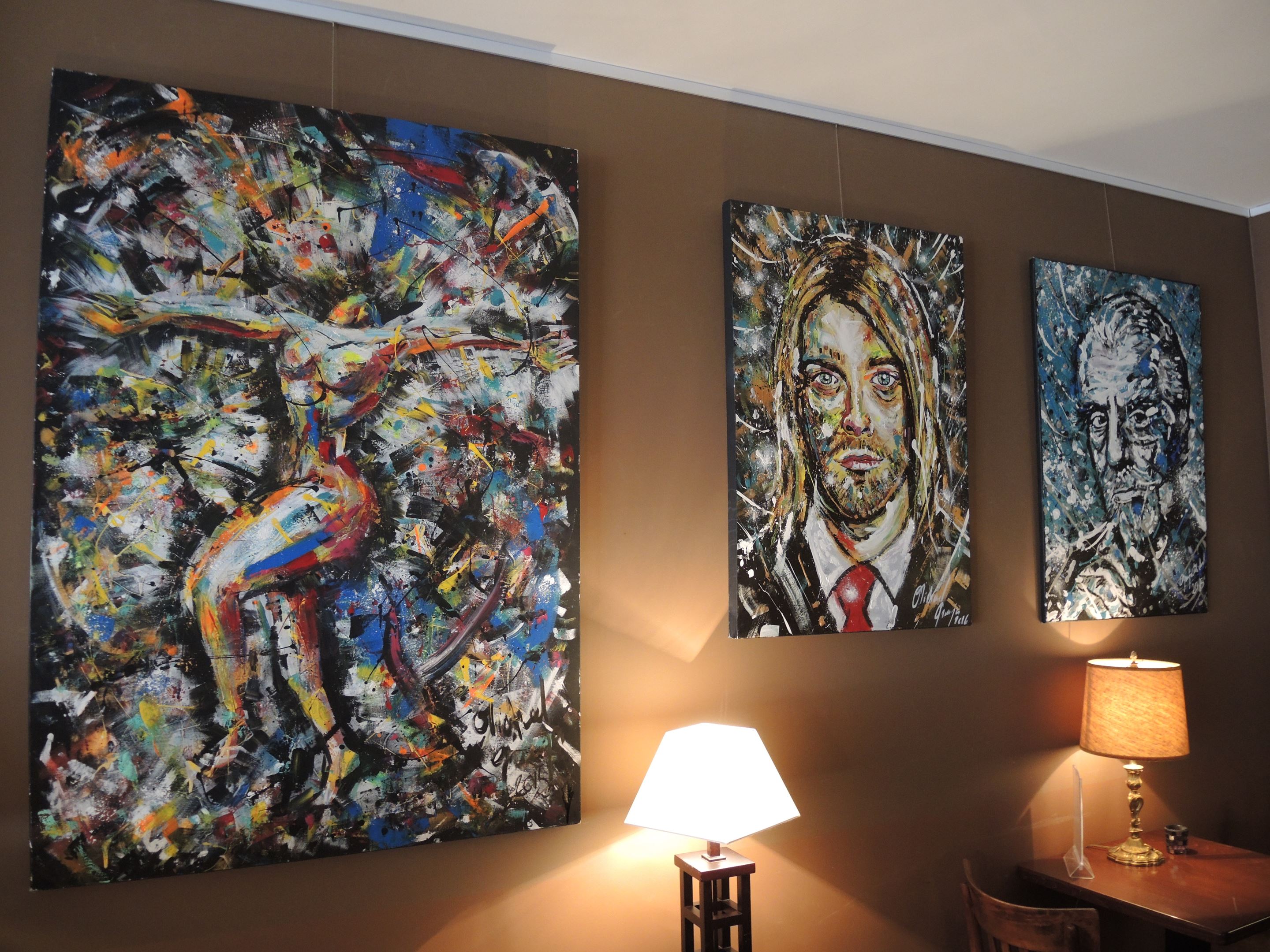 Après avoir rencontré Michael Granja au Geneva Gaming Convention, il m’a proposé de voir quelques unes de ses toiles exposées au Broc’en Blanche Café, pour me montrer un autre style que celui que j’avais pu voir lors de la convention.