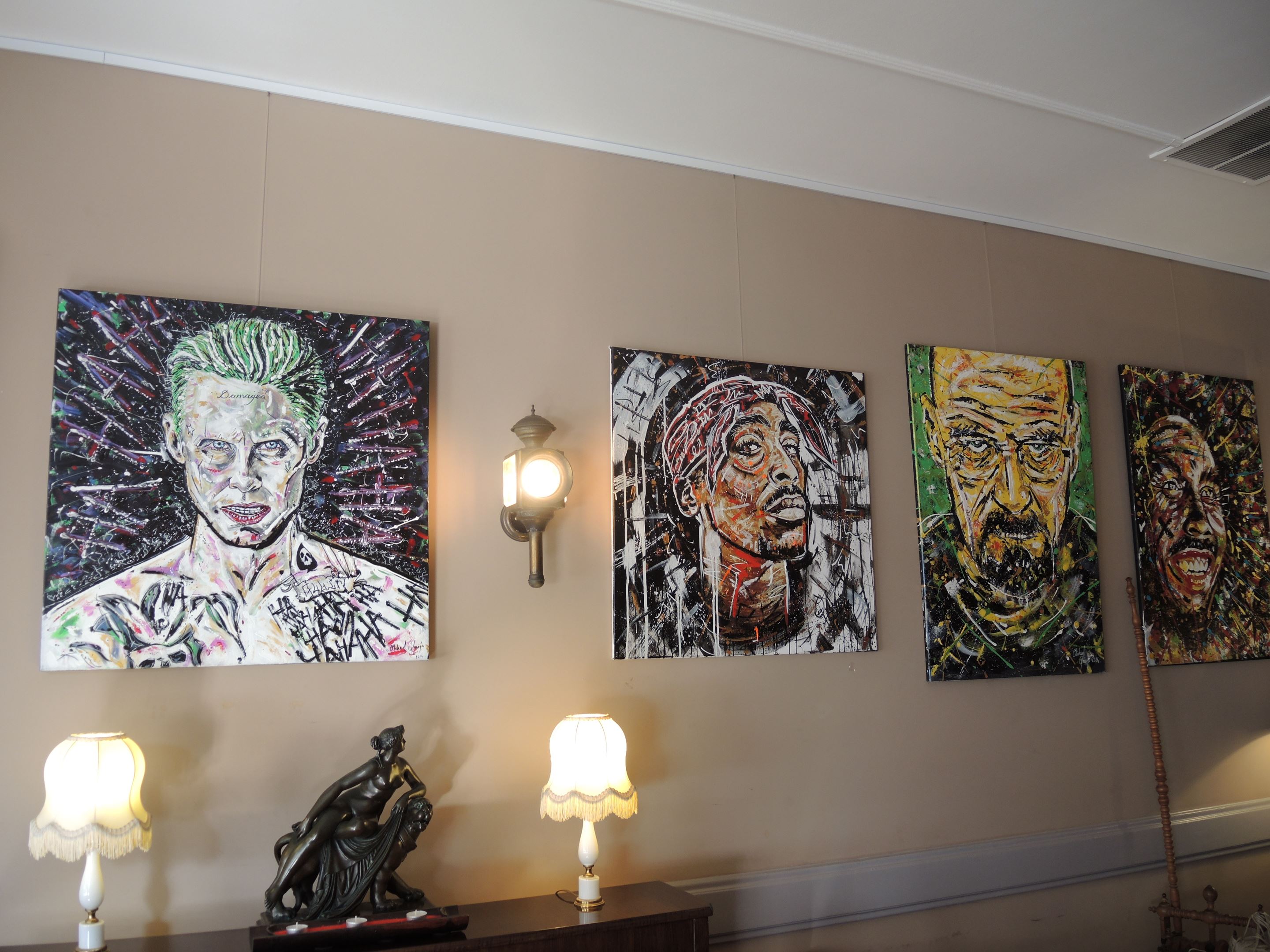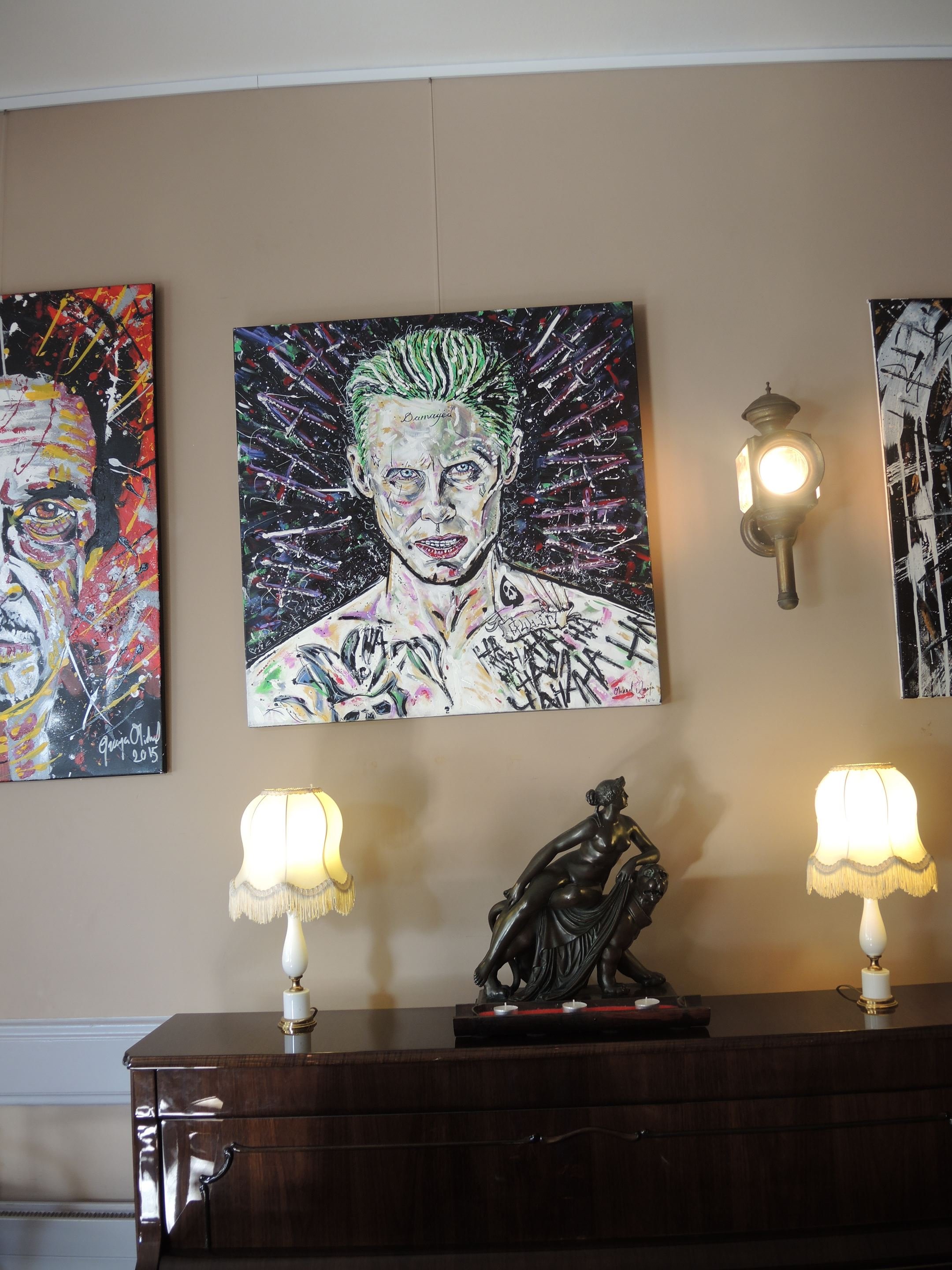 C’est dans une ambiance chaleureuse et parmi des objets magnifiques, comme des vieilles machines à écrire, un piano, un berceau, que j’ai pu découvrir cette expo et discuter en toute simplicité autour d’un verre avec Michael. Si je ne devais utiliser qu’un seul mot pour le décrire, à part talentueux, c’est accessible. Accessible par sa manière de mettre à l’aise, sa sympathie et comment il aborde son art en laissant votre esprit divaguer à propos de ses toiles en accueillant votre point de vue avec plaisir et intérêt.