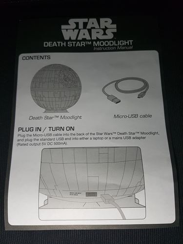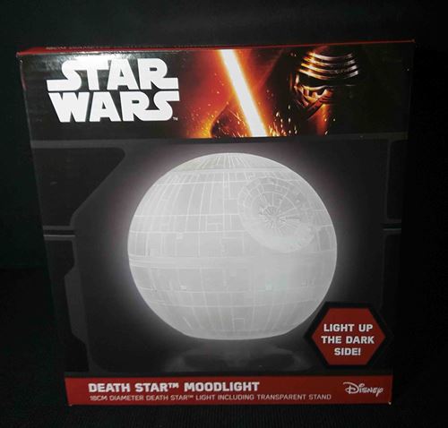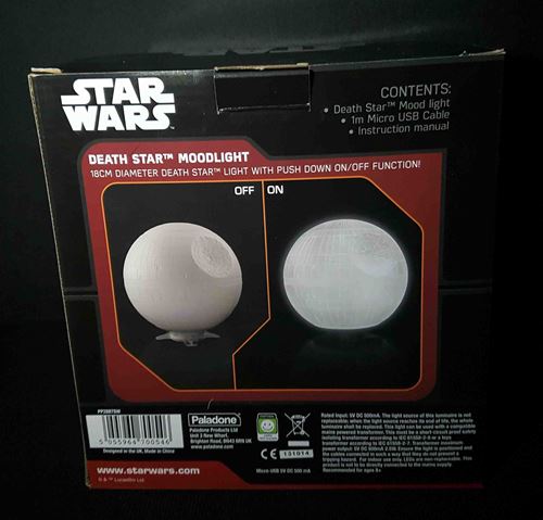 J’avais vu passé sur son site parmi les arrivages, une moodlight (lampe d’ambiance qui est plus là pour l’ambiance que pour vous éclairer réellement) de l’Étoile de la mort qui d’après la boîte « Light up the dark side » (Illuminera le côté obscure). Autant vous dire que je préfère quand mon côté obscure reste inexploré et sombre, mais je suis un fou, un aventurier, prêt à négocier avec les pires négociants de Tatooine quand je vois un objet qui me plaît; capable de faire la course de Kessel en moins de 11,5 parsecs!