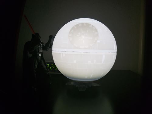 Depuis que je l’ai, je me réveille 10 minutes avant que mon réveil sonne, juste pour contempler le doux halo argenté qui nimbe l’Étoile Noire et me prendre, le temps de quelques citations entrecoupées d’une respiration d’asthmatique, pour Darth Vader!