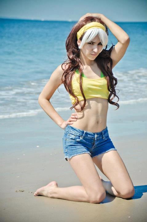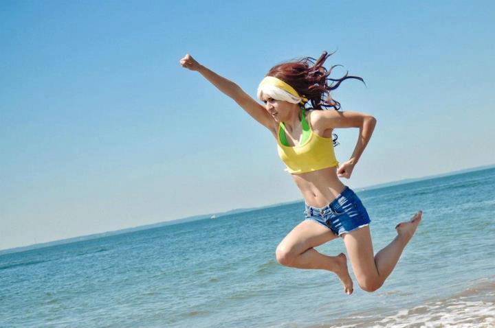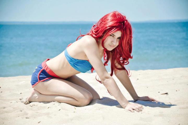 Je ne sais pas vous, mais ça sent les vacances à plein nez. Cyril m’a déjà devancé et est déjà parti. Pour ma part je dois encore attendre une semaine pour me retrouver les doigts de pieds en éventail sur la plage à siroter un cocktail. En attendant je vous propose 5 cosplays pour le prix d’un, avec une jeune fille qui joue à se déguiser et à prendre la pose sur la plage.