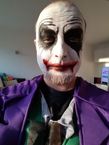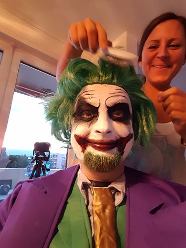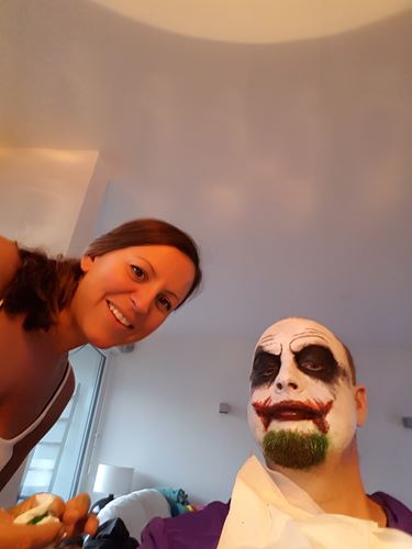 Après avoir commandé une perruque du Joker, chauvitude oblige, et avoir retrouvé un vieux déguisement que j’avais acheté il y a quelques années pour nouvel an, que nous avons décidé de bloquer une date pour se lancer.