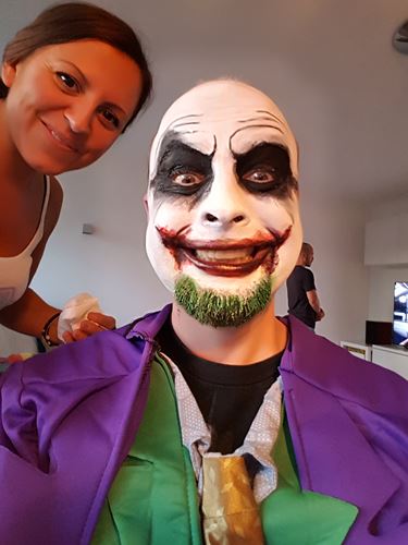Depuis que j’ai vu les maquillages pour Halloween qu’avait réalisé une amie, Cynthia, que j’avais envie de devenir son cobaye et de me faire maquiller par ses soins. Le temps a passé et je n’ai pas eu l’occasion de lui demander… Mais ça, c’était avant! Il y a quelques semaines je lui ai proposé de me grimer en Joker ou en Hulk. Et c’est avec plaisir qu’elle a été motivé et partante pour ce genre de délires.