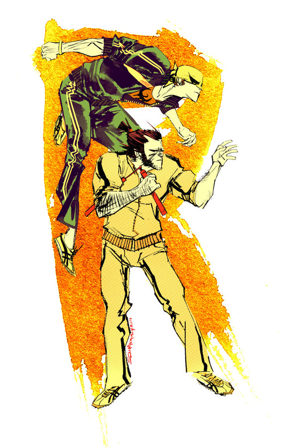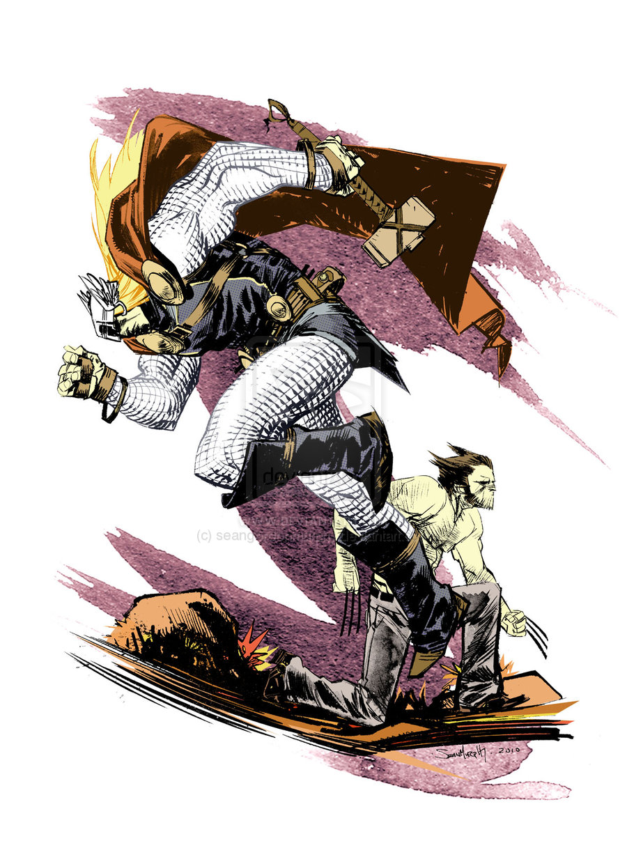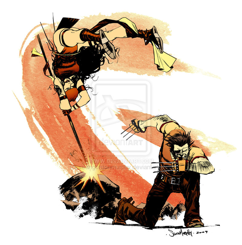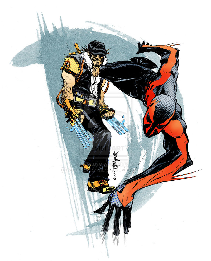 J’ai eu le souffle coupé quand j’ai vu le travail de Sean Gordon Murphy. Il a réalisé, entre autre, un abécédaire impressionnant de Wolverine faisant équipe avec divers supers-héros. Le tout avec un coup de crayon qui fait penser à Leinil Yu. Je vous ai mis l’abécédaire et chaque image en plus grand pour que vous puissiez mieux admirer son travail.