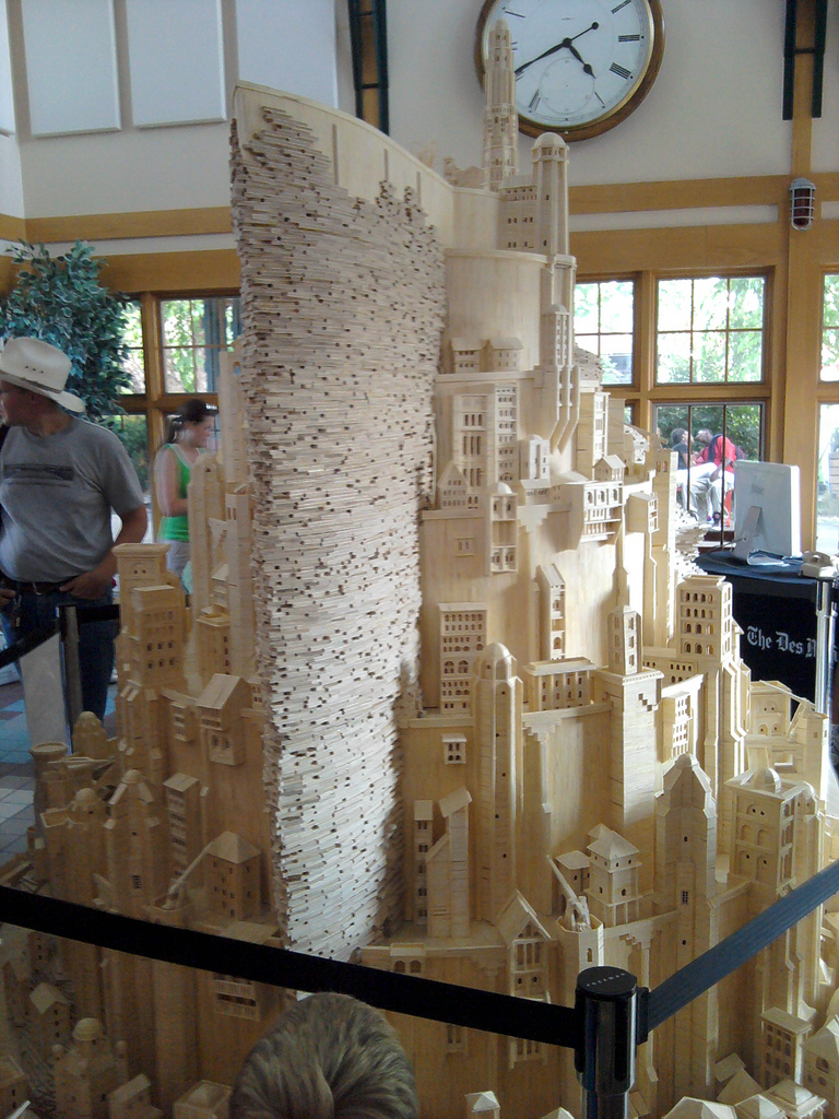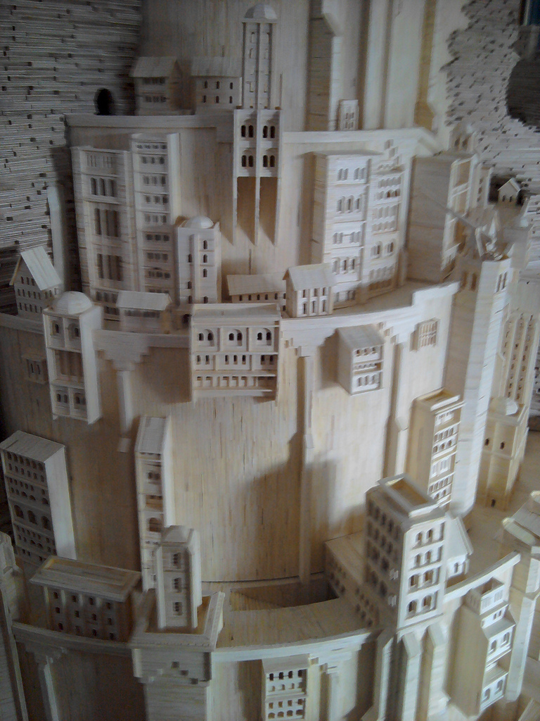 Que vous soyez ou non du Seigneur des anneaux, je pense que ce qui suit va vous plaire. Ce modèle réduit de la ville de Minas Tirith a été fait par Patrick Acton, un artiste de l’Iowa. Oui, mais ce n’est pas tout, car l’ensemble a été fait avec minutie, juste avec de la colle et des allumettes.