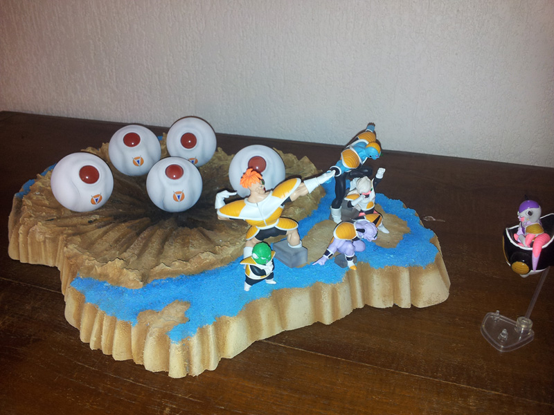 1-La première est la reproduction de la Planète Namek, de 5m, tout à l’échelle… De l’arrivée de Freezer (mon personnage préféré) jusqu’à l’explosion de la planète et que tout se désintègre.