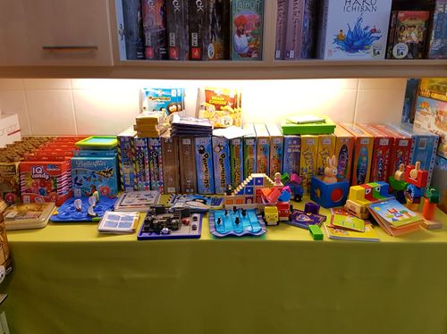 Presque pour tous les jeux, vous avez un exemplaire ouvert à votre disposition pour jeter un œil aux instructions, à la qualité du matériel ou des illustrations.