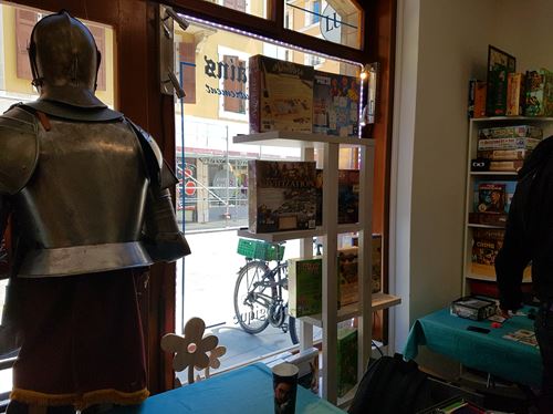 C’est avec plaisir que j’ai découvert que c’était une boutique consacrée aux jeux de société pour petits et grands… A ce moment là mon portefeuille a tremblé d’effroi en sachant ce qu’il allait subir si je rentrais… Mais avant que j’ai pu faire demi tour pour préserver mon compte en banque, j’étais déjà à l’intérieur!