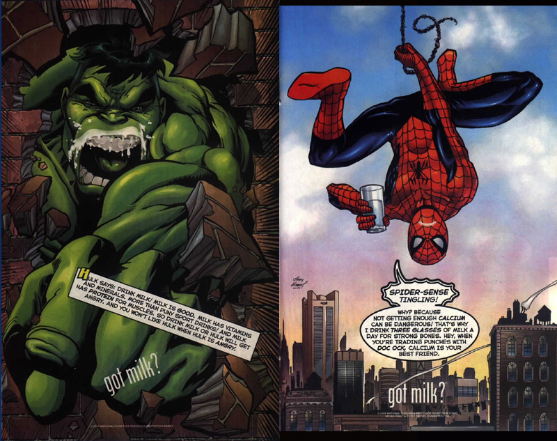 Pour lancer cette rubrique j’ai décidé de vous montrer certaines images, surtout celles qui illustrent des super-héros, de la campagne de pub « Got Milk ».