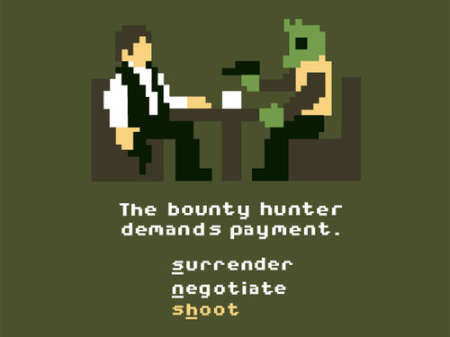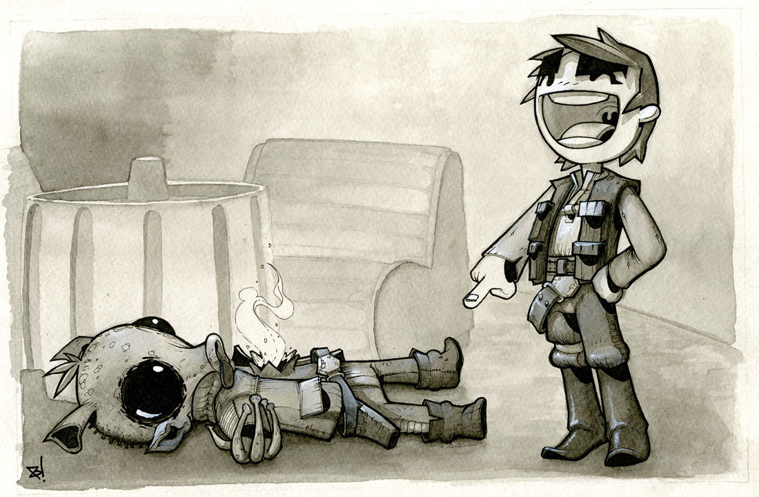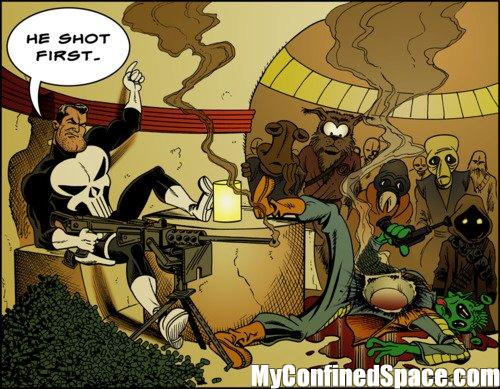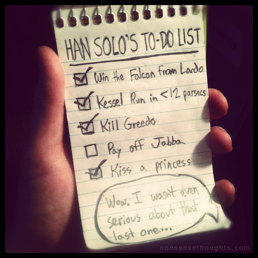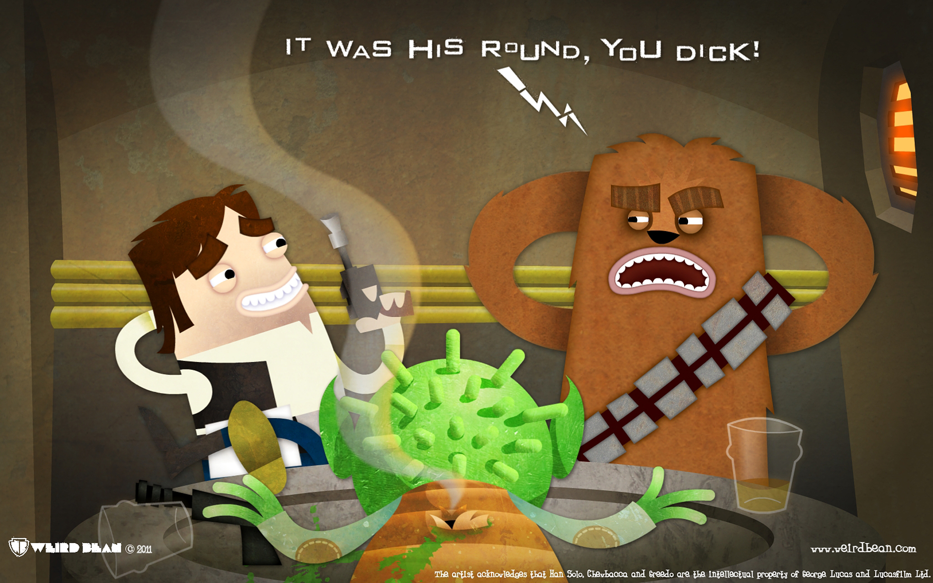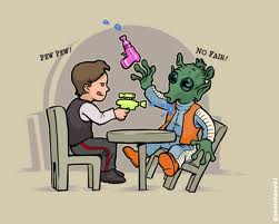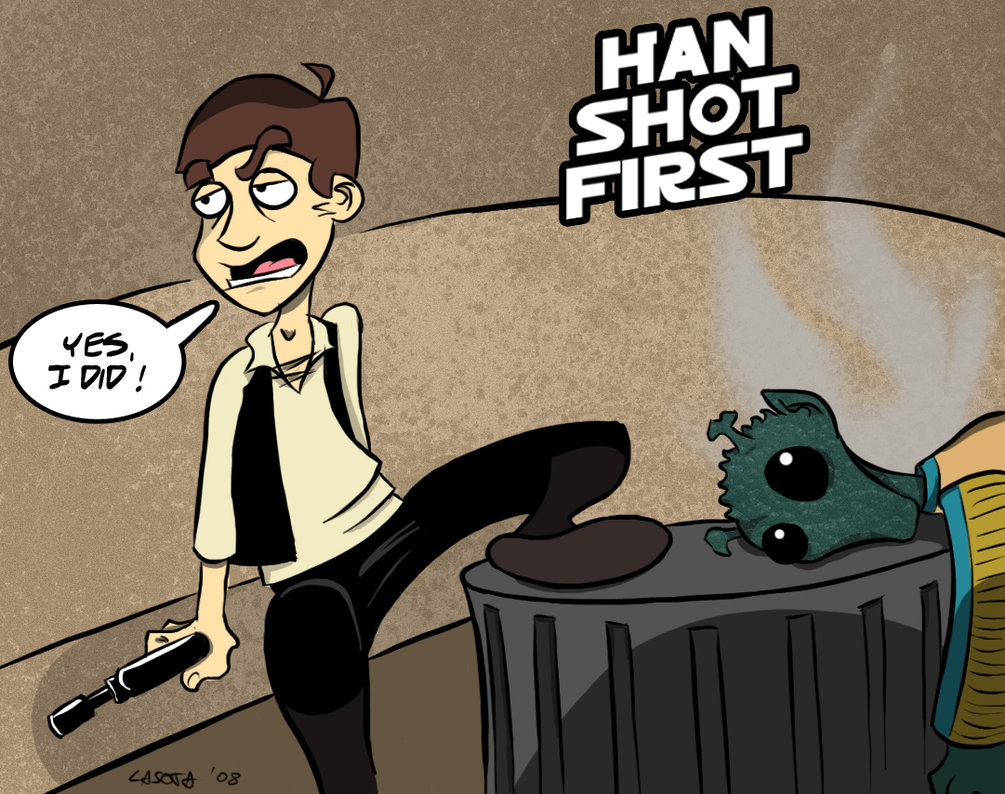 Bon, je pouvais pas vous laisser commencer la semaine sans votre dose de déconnade. Ça aurait pas été raisonnable de vous laisser aller au travail dans cet état! En plus le deuxième motivateur confirme le fait que c’est bien Han Solo qui a tiré le premier!